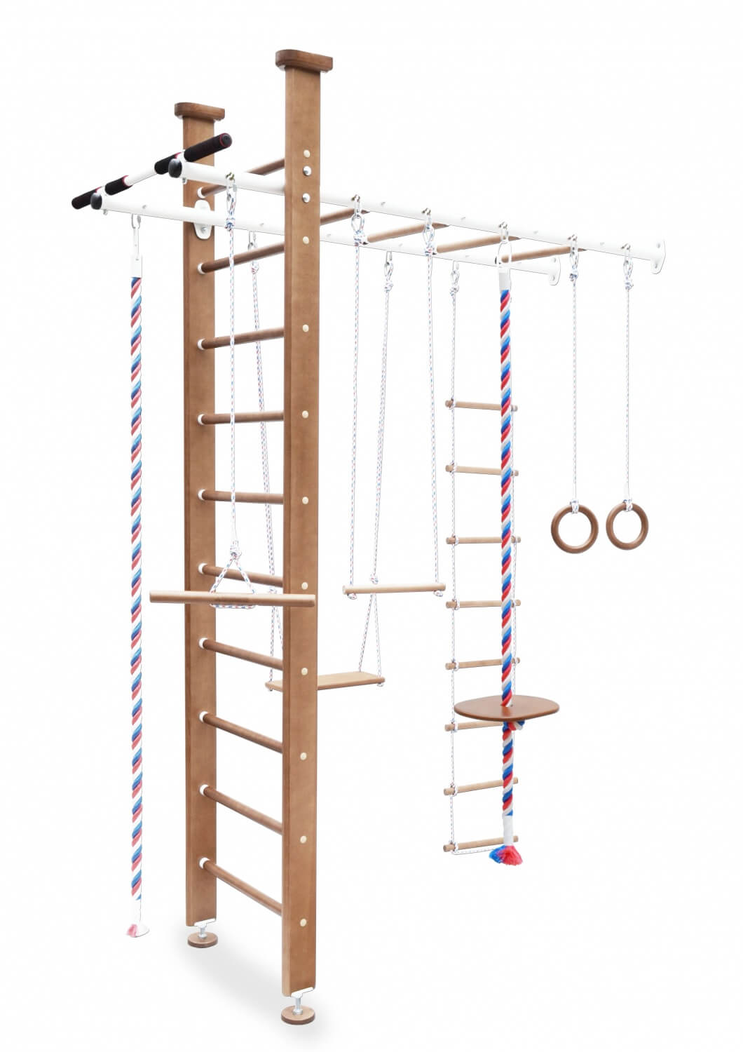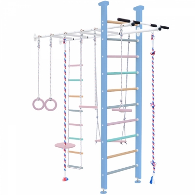 Комплектация: турник вер.лестница, качель, трапеция, лиана кольца, тарзанка, канат,