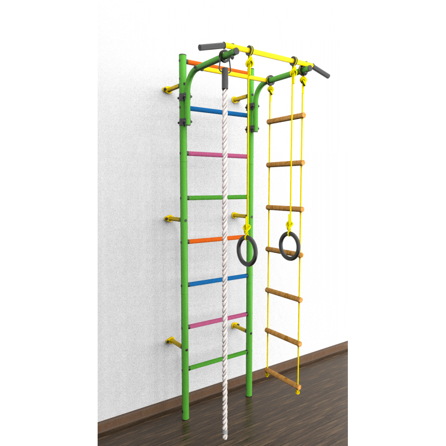 шведская стенка, кольца гимнастические, канат, турник регулируемый по высоте, веревочная лестница
